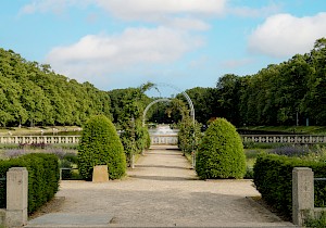 Nördlich des Weihers findet sich der barock angelegte Blumengarten mit seinen Rosenbeeten und den früher pyramidenförmig, heute eher pinienzapfenartig geschnittenen Taxus-Bäumen. Von hier hat man wie von einem Balkon einen guten Blick in die beiden künstlich angelegten Brutzonen. Die mit Gräsern, Binsen und Schwertlilien bepflanzten und umzäunten Areale sind ideale Ruhe- und Rückzugsgebiete für Enten, Schwäne und Teichhühner.