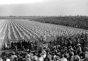 Konrad Adenauer trieb in seiner Amtszeit als Kölner Stadtoberhaupt von 1917 bis 1933 eine moderne Stadtplanung mit mehr Erholungsmöglichkeiten für die Kölner Bürger*innen voran. Zu diesen gehörte neben vielen Grünanlagen auch der nahegelegene Sportpark Müngersdorf mit seinen Sportanlagen, Spielplätzen, Schwimmbädern und natürlich dem Stadion.