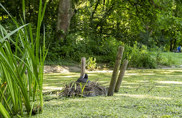 Die Wasservögel genießen die Ruhe rund um den Parkweiher.